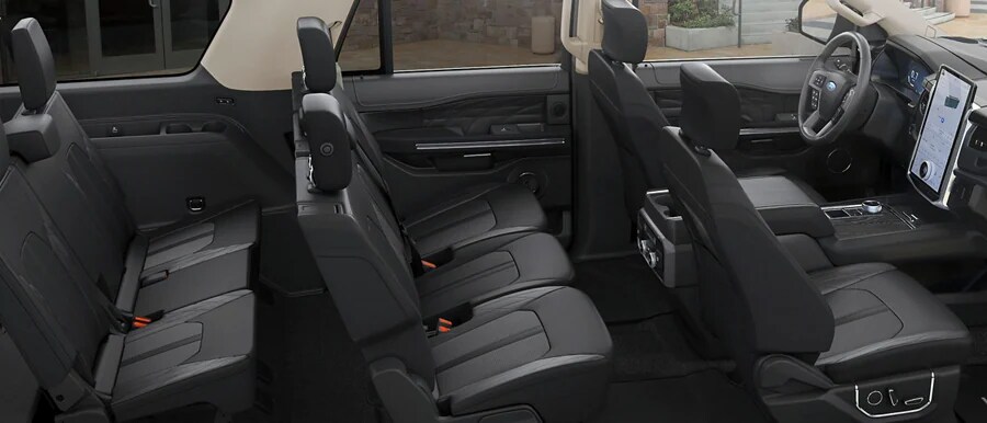 The 2022 Ford Expedition offers 104.6 cu. ft. of cargo space behind the first row of seating,* 63.6 cu. ft. behind the second row** and 20.9 cu. ft. behind the third row. Expedition MAX adds another 16.9 cu. ft., totaling up to a 121.5 cu. ft. Plus, the standard Cargo Management System helps you organize anything from groceries to equipment or whatever else your day demands.â€